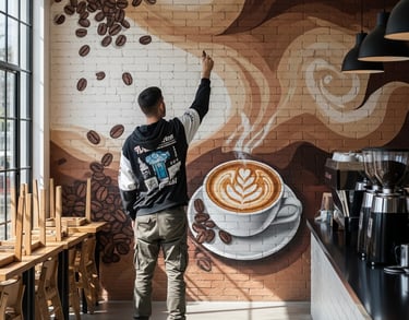 Un mural original se convierte en el fondo perfecto para que tus clientes hagan fotos y las compartan en redes, dándole visibilidad gratuita a tu negocio.
