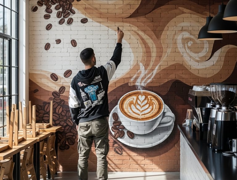 Un mural artístico pintado a mano por Mural Profesional no solo te identifica, ¡te diferencia! Captura la atención, genera impacto y deja una impresión duradera en tus clientes.